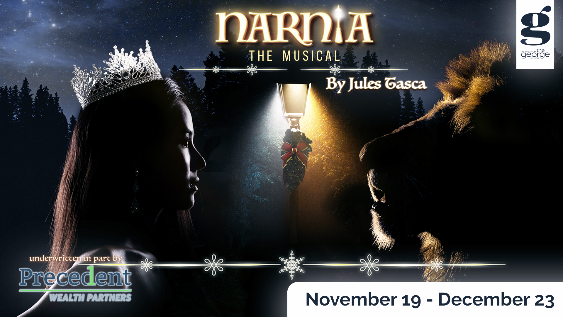 Join us for a night at the A. D. Players’ George Theater on Thursday, December 11, 2025 at 7:30 p.m. to see Narnia the Musical.